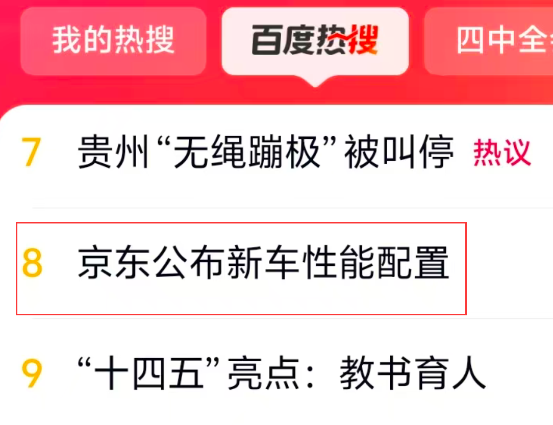 家电消费网10月24日讯 今天,“京东公布新车性能配置”冲上百度热搜。