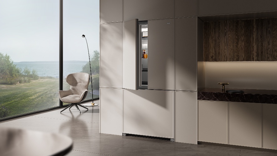 二是设计新维度:从“摆放电器”到“融入生活”,让美学与生活和谐共生。传统冰箱设计逻辑始终围绕着“如何更好地优化空间”,而方太则认为冰箱不应是厨房中突兀的功能单元,而应是融入整体家居美学的有机组成部分。通过由保时捷同款设计师、国际设计大师ArmanEmami操刀的“全嵌设计”,方太全球新一代高端全嵌冰箱实现了从“需要被安置的电器”到“提升空间美感的装置”的角色转变,以无缝全隐的形态,展现在厨居生活中。
