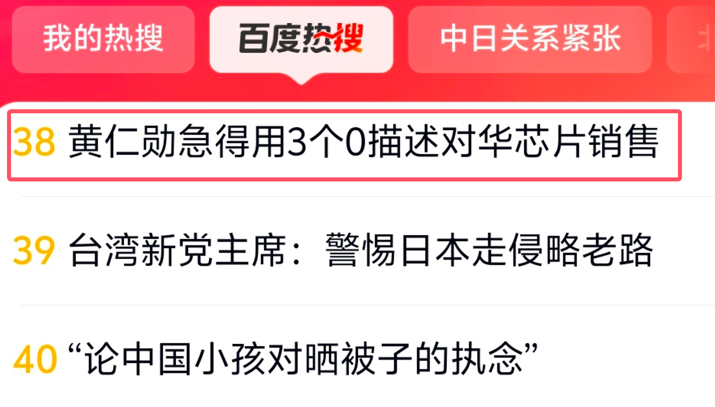 “黄仁勋急得用3个0描述对华芯片销售”冲上百度热搜