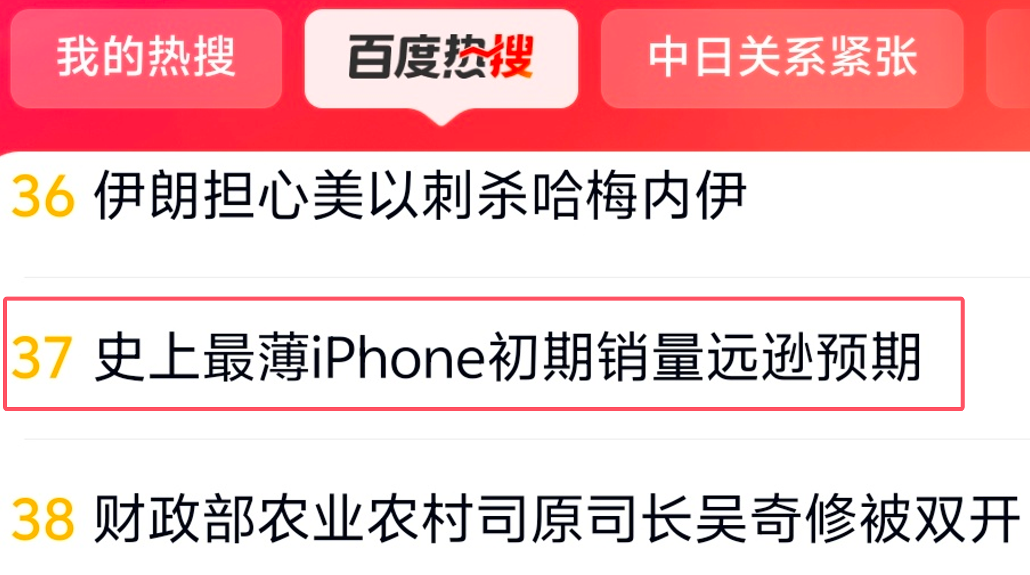 “史上最薄iPhone初期销量逊预期”冲上百度热搜