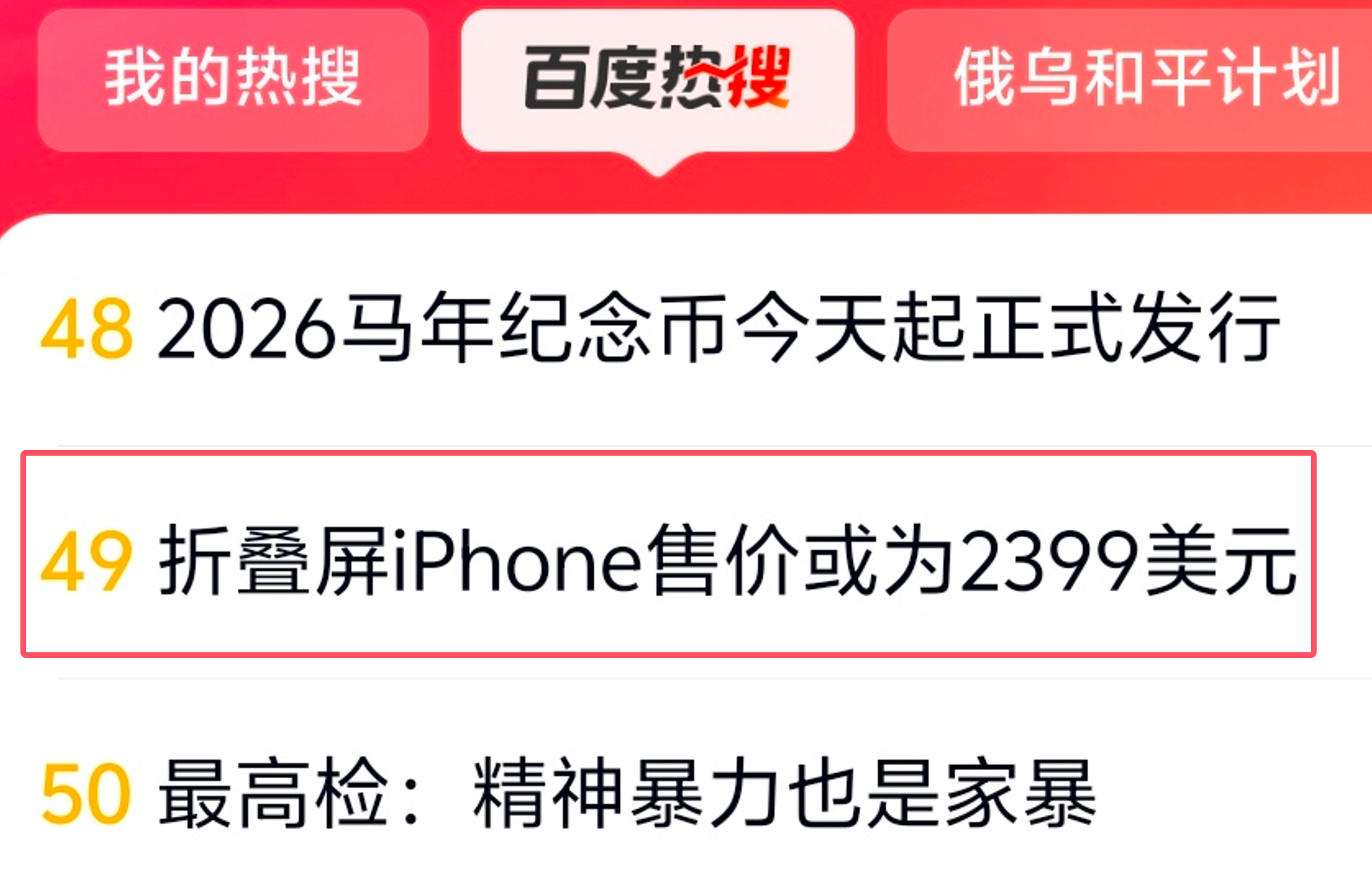 “折叠屏iPhone售价或为2399美元”冲上百度热搜