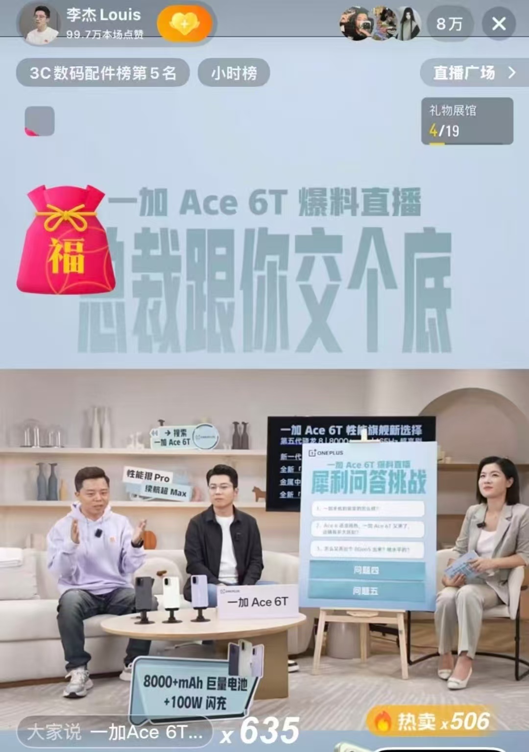 一加老总直播透露一加Ace 6T细节 创下9万人同时观看记录