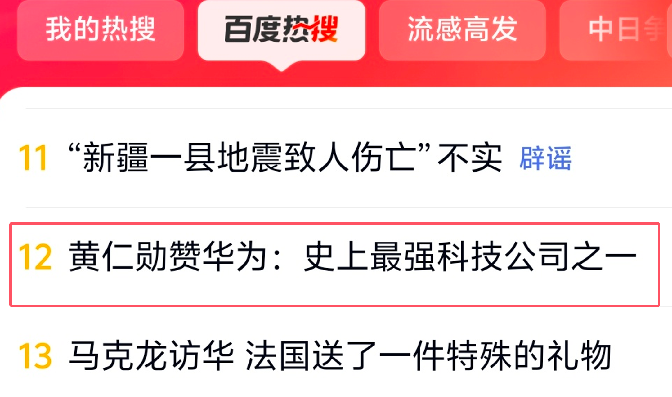 “黄仁勋赞华为:史上最强科技公司之一”冲上百度热搜