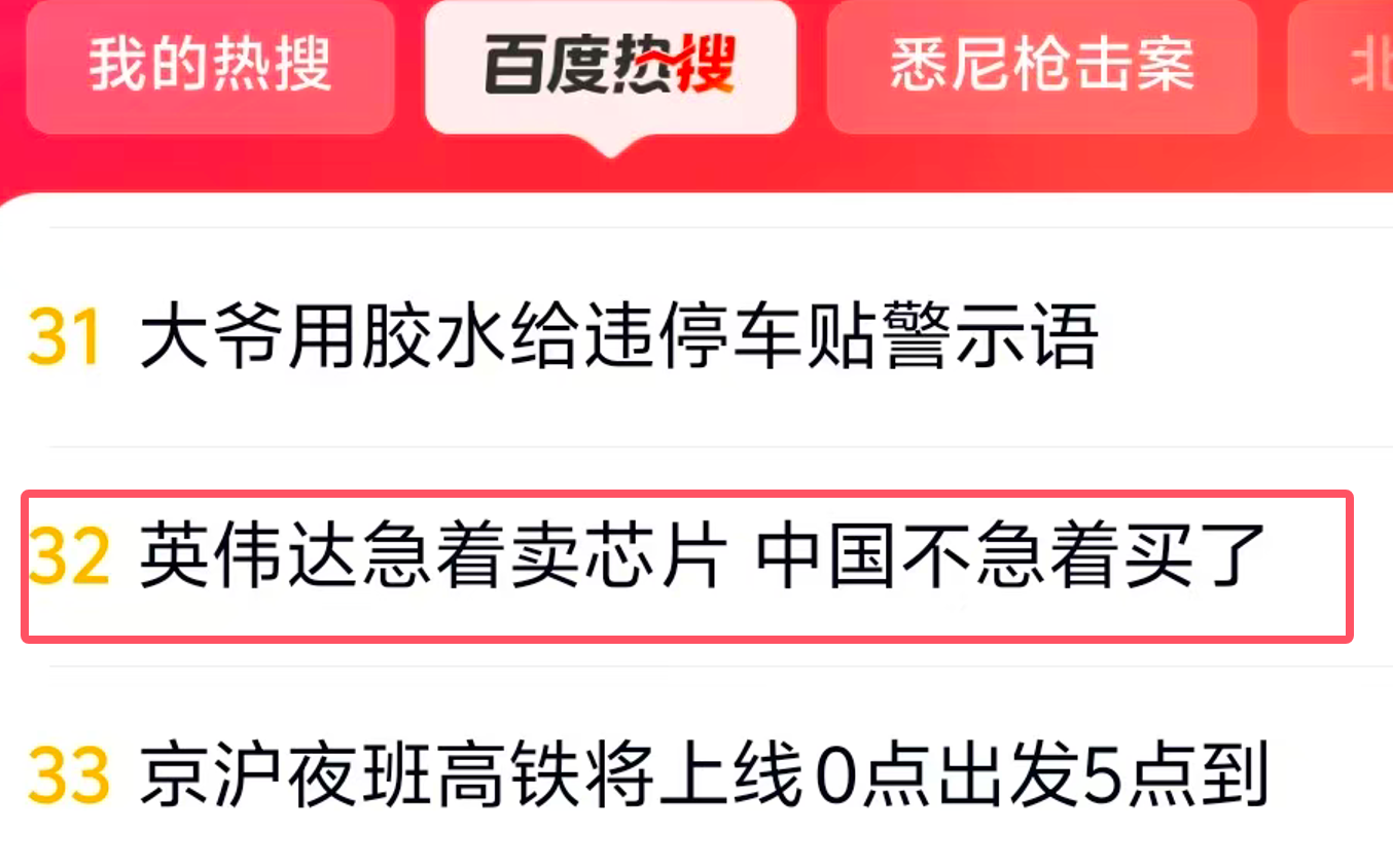 “英伟达急着卖芯片 中国不急着买了”冲上百度热搜