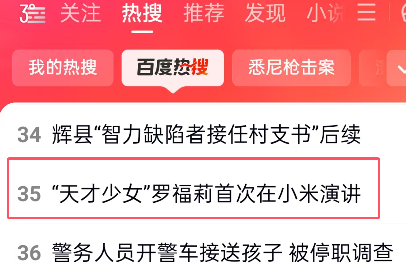 “‘天才少女’罗福莉首次在小米演讲”冲上百度热搜
