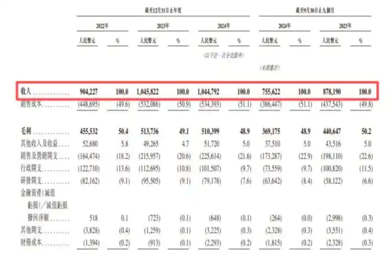 近年来,公司先后有杨洋、张凌赫、王一博等明星代言,还与陈梦、闫妮、武艺联手展现产品。2022年—2024年以及2025年前9个月,公司的销售及营销开支分别为1.64亿元、2.16亿元、2.26亿元以及1.98亿元,占总营收的比重分别为18.1%、20.7%、21.6%以及22.6%。