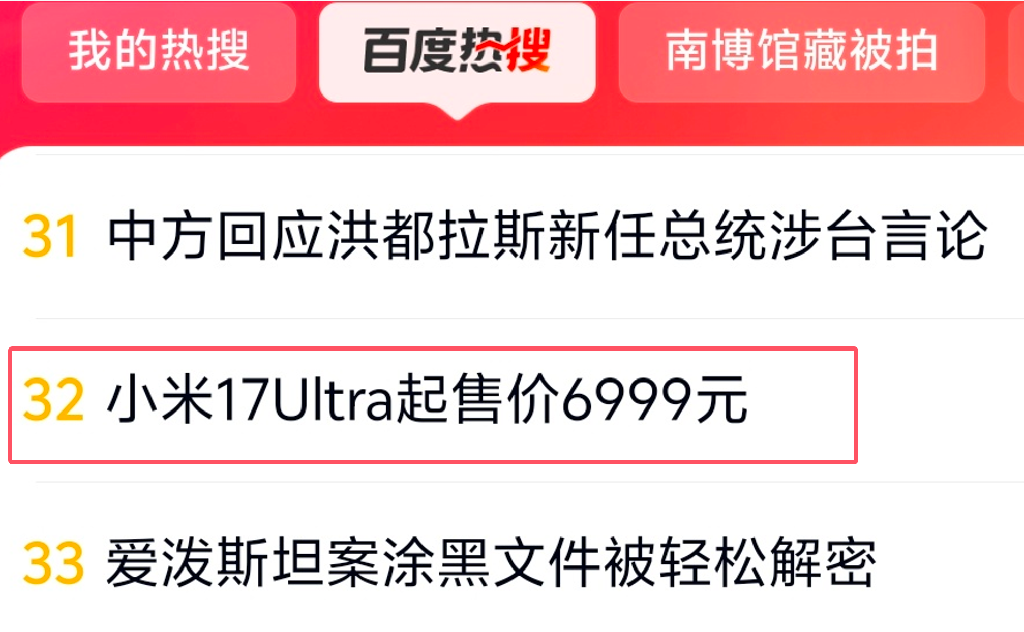 “小米17Ultra起售价6999元”冲上百度热搜:拍烟花效果比iPhone好