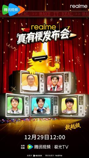 真我此次彻底颠覆传统发布会模式,邀请真我副总裁、中国区总裁徐起与四位极具代表性的脱口秀演员——何广智、小四爷、王小利、李文同台,将“敢越级”、“自在做真我”的品牌主张与“创飞预制人生”、“那咋了”、“应届牛马”、“生活主理人”等年度热梗展开深度内容共创。