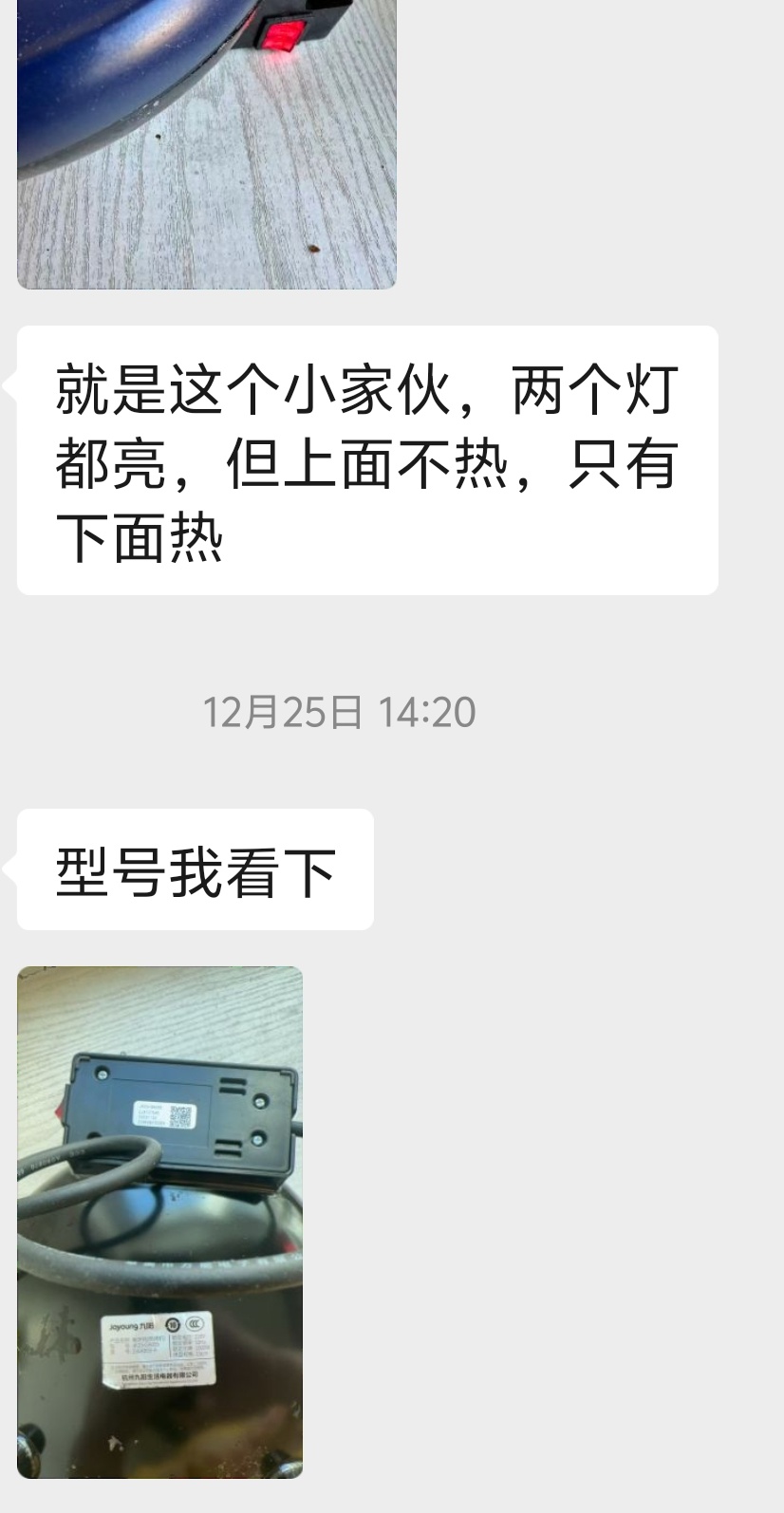 家电消费网12月31日讯 昨天,北京消费者田女士向家电消费网投诉称,其购买的九阳电饼铛JK23-GK655使用没多久,就出现上部不发热,只有下部发热的问题。还找不到售后维修,令其对九阳的电器十分失望。“我觉得九阳的电器不行,用不了都就坏了。配件还死贵。之前买了一个九阳开水器也是,很快就坏了,里面的滤芯还很贵。不会再买九阳产品。”