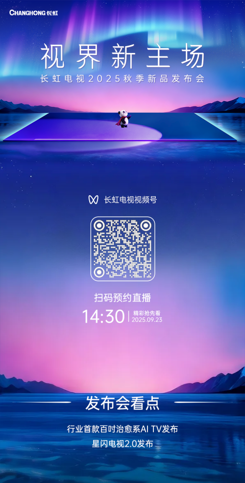 9月23日,以“视界新主场”为主题的长虹电视2025秋季新品发布会将于成都虫洞艺术空间隆重启幕。届时,长虹将携行业首款百吋治愈系AI TV 追光100Q10Air与星闪电视2.0全新登场,重新定义家的温度,打造颠覆以往的全新“视界新主场”。