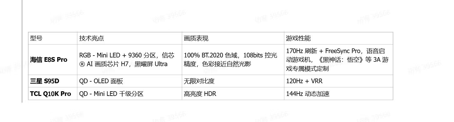 避坑提示:警惕 “伪 4K” 屏幕(确认 RGB 三色真 4K);低端 Mini LED 分区数不足 200 慎选;接口需满血 48Gbps 带宽。