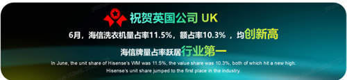 海信洗衣机在全球高端市场的成功,离不开其全球化战略的深入推进。目前,海信洗衣机已经畅销全球140多个国家,欧洲市场表现尤为亮眼,今年6月份在英国市场占有率突破11%,跃居行业第一;在克罗地亚、塞尔维亚等市场更是突破30%的占有率,保持高速增长态势。