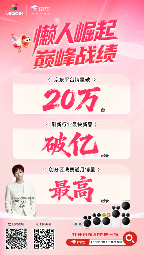 凭借卓越的产品设计与高口碑表现,Leader三筒洗衣机不仅登顶京东新品金榜TOP1,还收获超10万条真实用户好评,成为越来越多年轻家庭首选的智能洗护产品。新形态的洗护方式不仅推动了Leader完成品牌跃迁,也使其成为当下年轻人最喜爱的洗护品牌之一,进一步塑造了健康、科学的家庭洗护行业生态。