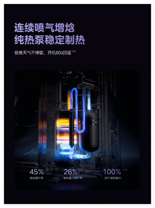 作为仅次于“三巨头”的品牌,华凌空调始终走在行业前沿,以华凌神机二代Ultra挂机为例,其创新搭载双出风连续喷气增焓技术,这个原本是万元级中央空调才有的配置,被华凌空调直接“下放”,再加之大双排冷凝器、双排蒸发器、大直径风轮、电子膨胀阀的应用,使其制热性能大幅提升26%,天气再冷也不停歇,-20℃制热能力高达100%,开机60S就能回温,堪称极寒气候下的优选制热神机。以此来看,华凌空调在漠河的适应能力,可能是“小菜一碟”。