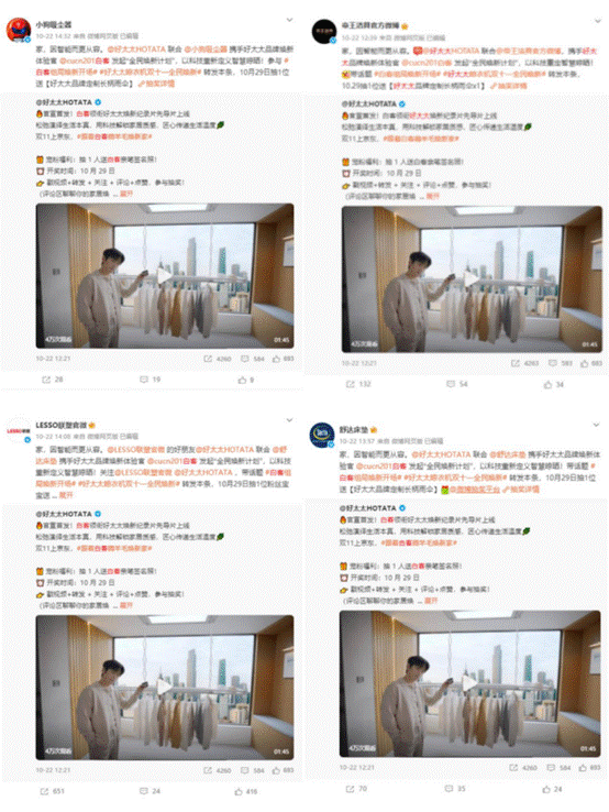 在微博,好太太联合中国联塑、舒达床垫、帝王洁具等45家行业品牌发起微博蓝V联动,在社交媒体形成持续传播热潮,进一步巩固了品牌与用户的情感连接,展现出好太太在智能家居领域的强大号召力。