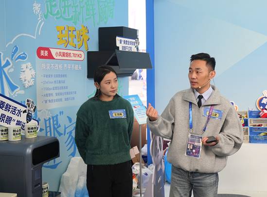本场直播,还因“专业级”嘉宾阵容引发关注。全国单板滑雪大跳台女子冠军、单板职业教练王雪梅以特邀快闪体验官身份亮相,作为运动员,她对“精准、稳定”的专业诉求,与长虹、美菱家电的核心性能形成天然共鸣。在长虹、美菱直播虹人张云龙的陪同讲解下,带领观众沉浸式逛展。这种“大咖体验+专业解读”的模式,让抽象的参数转化为具象的感受,瞬间拉近了品牌与消费者之间的距离。