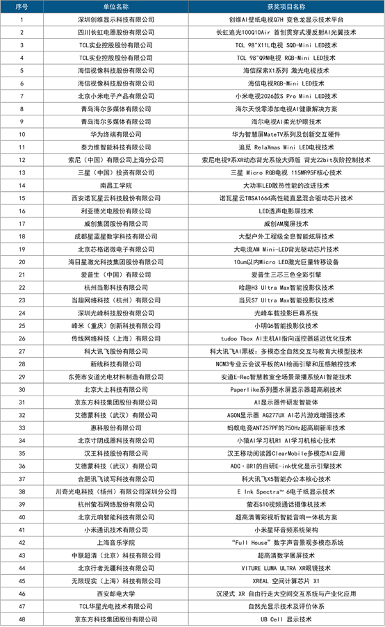 《2025年度显示技术及终端视觉健康应用实践》典型案例名单