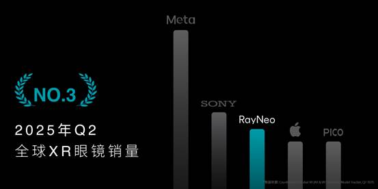 作为中国创新的代表性力量,雷鸟创新正以技术领先与市场占有率双优势,引领全球消费级 AR 市场。根据第三方机构 Counterpoint Research 的数据,2025 年第二季度,雷鸟创新以高达 39% 的市场份额,登顶全球 AR 眼镜市场第一,并且超越了苹果,成为了全球 XR 市场(含 VR 头显和 AR 眼镜)第三。