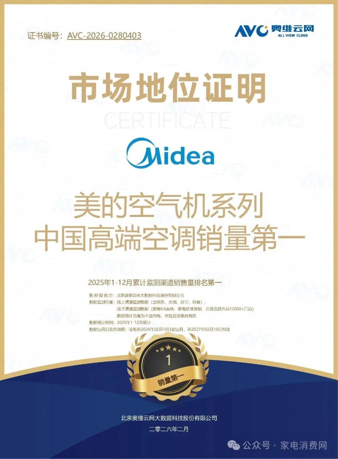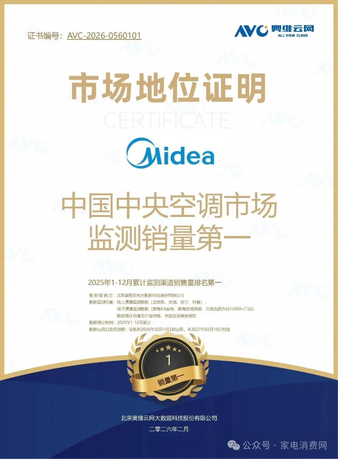 类似的感受,也反映在市场数据中。奥维云网监测数据显示,2025 年美的空气机系列和中央空调市场销量均位居行业第一。当消费者越来越理性时,市场往往会倾向那些让购买过程更简单、价格更透明的品牌。