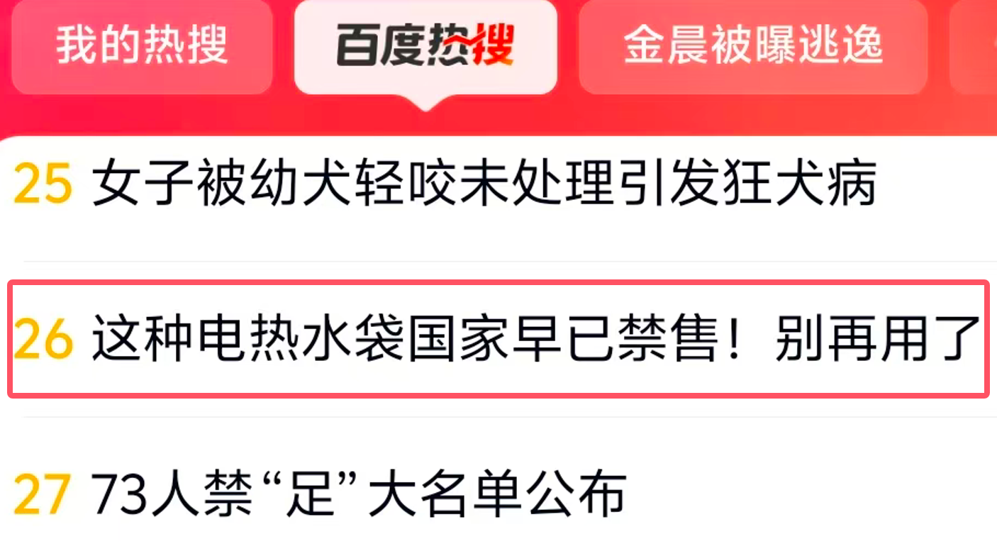 “这种电热水袋国家早已禁售!别再用了”冲上百度热搜