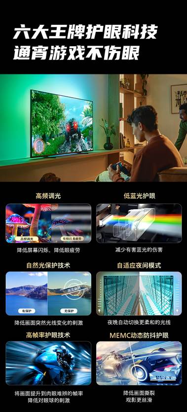 作为电竞显示领域的重磅力作,飞利浦高刷游戏电视7991不仅让客厅变身专业电竞战场,更实现娱乐体验与健康守护的双重升级。