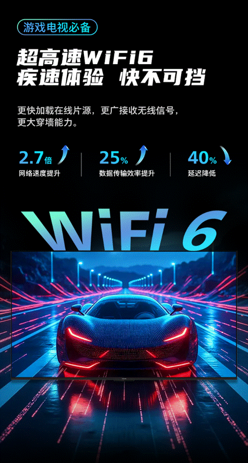 在云游戏兴起、多人联机成为常态的今天,网络速度与稳定性直接决定游戏体验。飞利浦高刷游戏电视7991内置超高速WiFi6模块,相比WiFi5在网络稳定性、内容加载率等方面实现全方位升级,更快加载在线片源,更广接收无线信号,抗干扰与穿墙能力同样出色,确保联机游戏时延迟稳定,不会出现突然卡顿、掉线的情况,通过电视直接畅玩海量3A大作,低延迟、高带宽的传输保障让云游戏画质媲美本地运行,真正实现“随时随地,想玩就玩”。