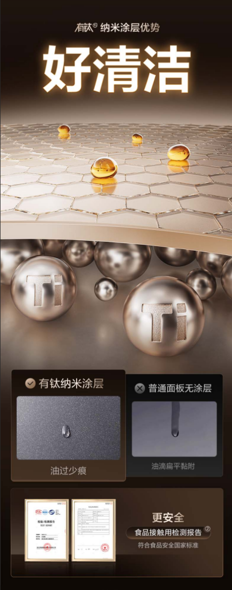 苏泊尔用钛重新定义安全厨房清洁:不再是费力擦拭,而是一抹即净的从容。