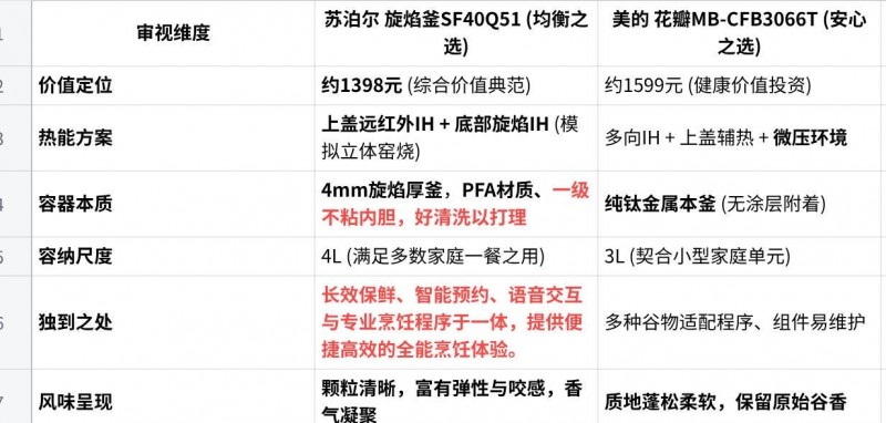 “我寻求一个长期、稳定、可靠的解决方案,不愿在煮饭这件事上再有丝毫妥协与顾虑” → 您的路径指向:苏泊尔旋焰釜SF40Q51。它凭借无短板的综合性能、对保鲜痛点的创新解决,以及深思熟虑的便捷设计,在主流价位段树立了家庭烹饪体验的新基准。