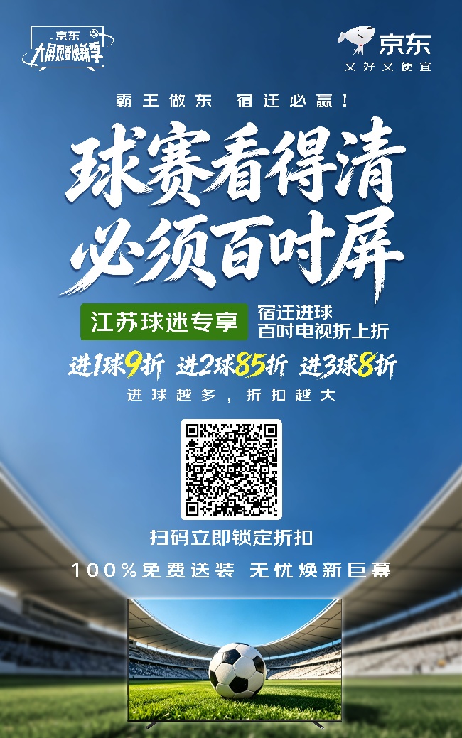 宿迁进球百吋电视折上折!京东为苏超球迷送专属福利