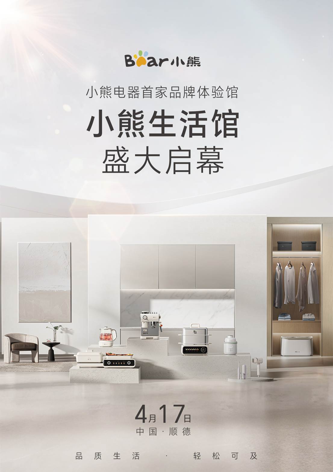 总之,如果你也想知道馆中究竟还藏有哪些美好与惊喜,4月17日,欢迎来小熊电器生活馆打卡,在这座城市新晋打卡地中,共同解锁品质生活新空间!