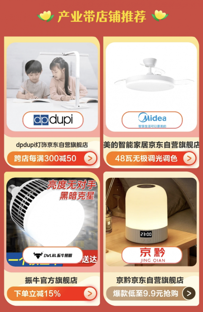 京东将为新入驻灯饰商家提供全周期专属扶持政策,助力企业快速打开线上市场、降低运营成本。具体措施包括:为新商家提供为期3个月的“新手保护期”流量加权;开辟专属“灯饰”频道入口;优先纳入开仓节、家装节等产业带大促主会场,帮助商家获得更多曝光机会。同时,京东推出佣金减免、保证金减半等优惠政策,切实降低企业入驻与经营成本。此外,京东还将为商家配备一对一的“灯饰运营官”,提供专属对接服务,并邀请企业免费参与京东灯饰类目集训营,系统提升运营能力。通过一系列扶持举措,京东将助力企业打造线上标杆,形成具有区域特色的品牌集群,持续提升“古镇灯饰”的品牌辨识度和市场竞争力。