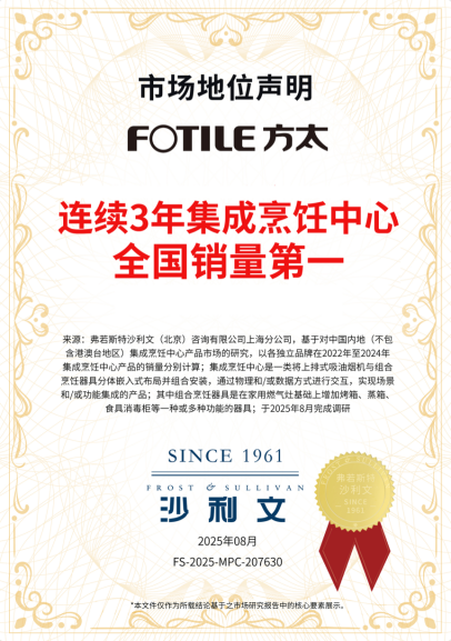 多次颠覆式创新,多次勇闯行业“未至之境”,方太以底层技术创新重新定义品类边界。而市场的长期选择,也为这种创新提供了最直接的验证。凭借持续的技术突破与品类引领,方太高端烟灶连续10年全国销量TOP1、水槽洗碗机连续3年全球销量TOP1、集成烹饪中心连续3年全国销量TOP1,销量背后既是消费者对产品价值的认可,也印证了方太已将专利积淀、技术创新与场景洞察,真正转化为高端市场中的长期竞争力。