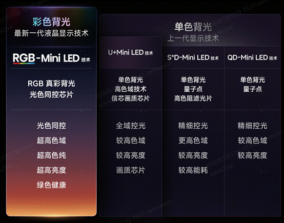 同属Mini LED阵营,RGB-Mini LED比SQD-Mini LED领先一代