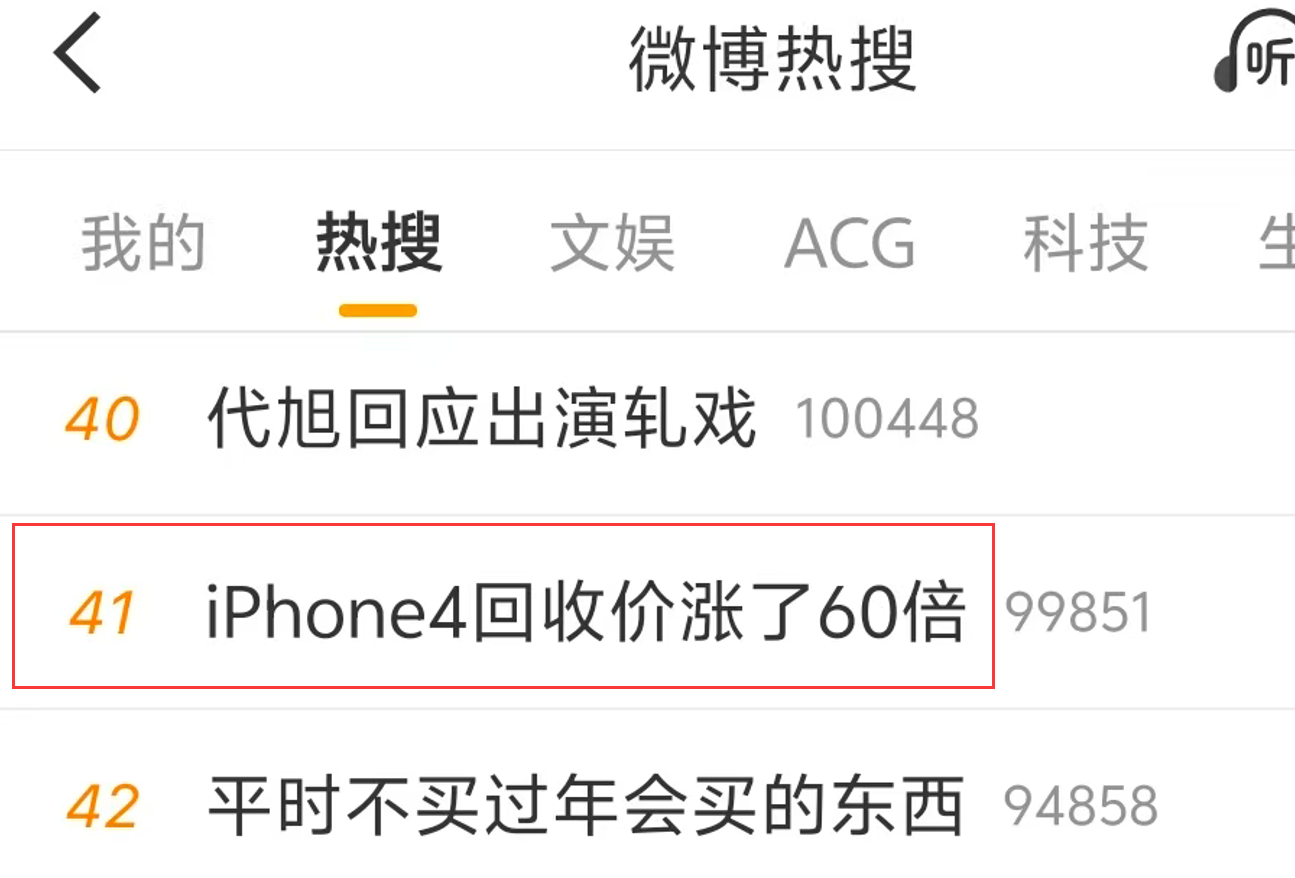 家电消费网1月10日讯 今天,“iphone4回收价涨了60倍”冲上微博热搜。