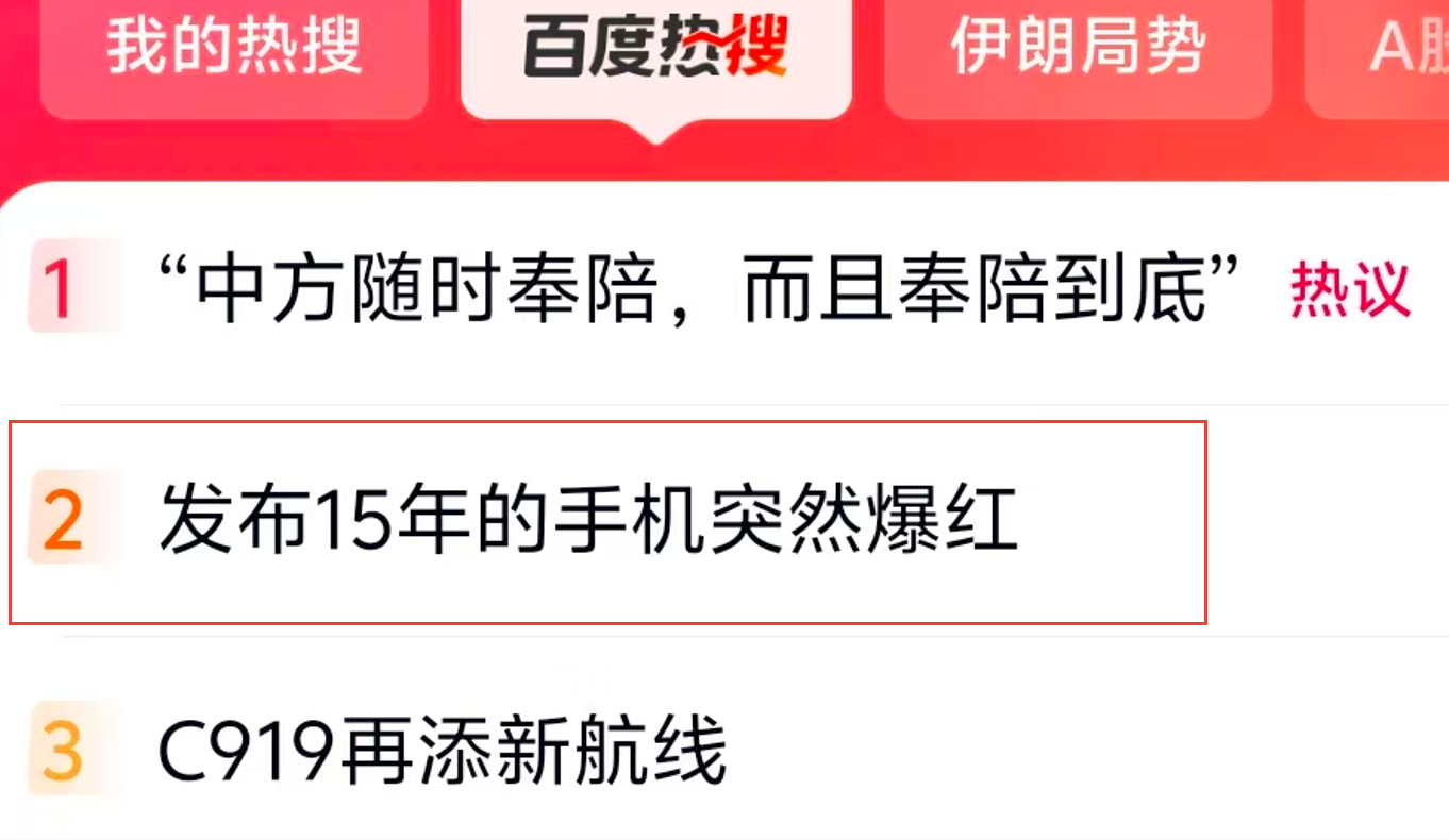 “发布15年的手机突然爆红”冲上百度热搜 网友:脑残