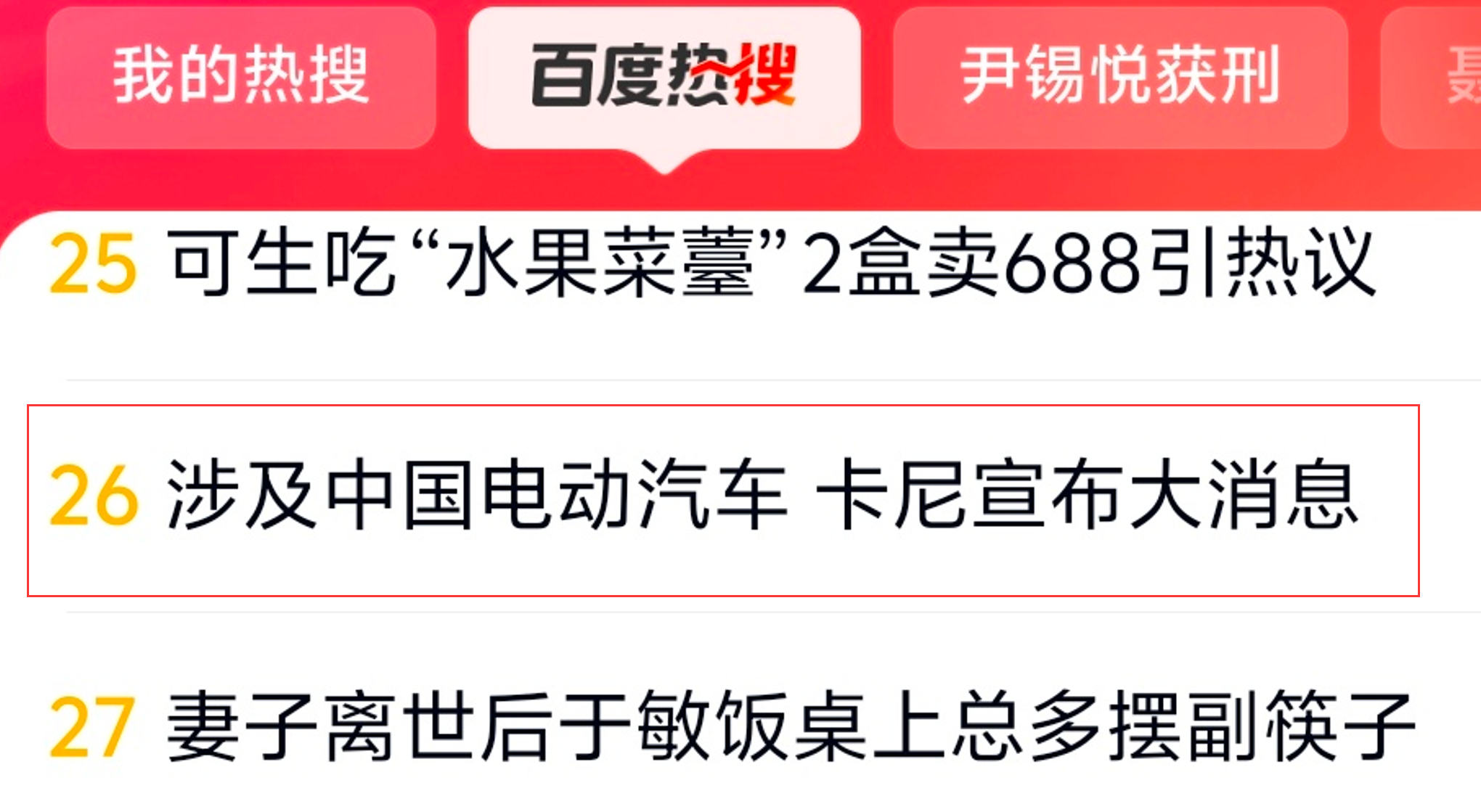 “涉及中国电动汽车 卡尼宣布大消息”冲上百度热搜
