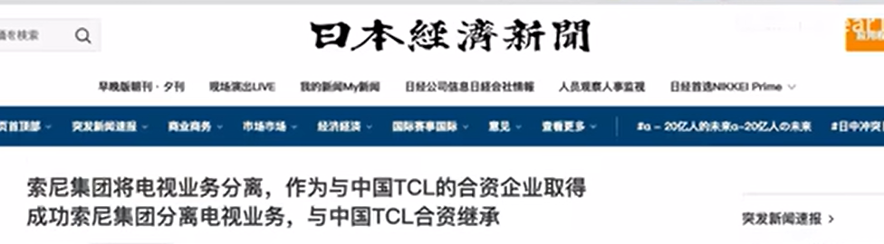 家电消费网1月20日讯 今天,索尼集团宣布,将剥离电视业务,并计划与中国电视企业TCL集团成立合资公司。其中,TCL出资占比51%,索尼出资49%。