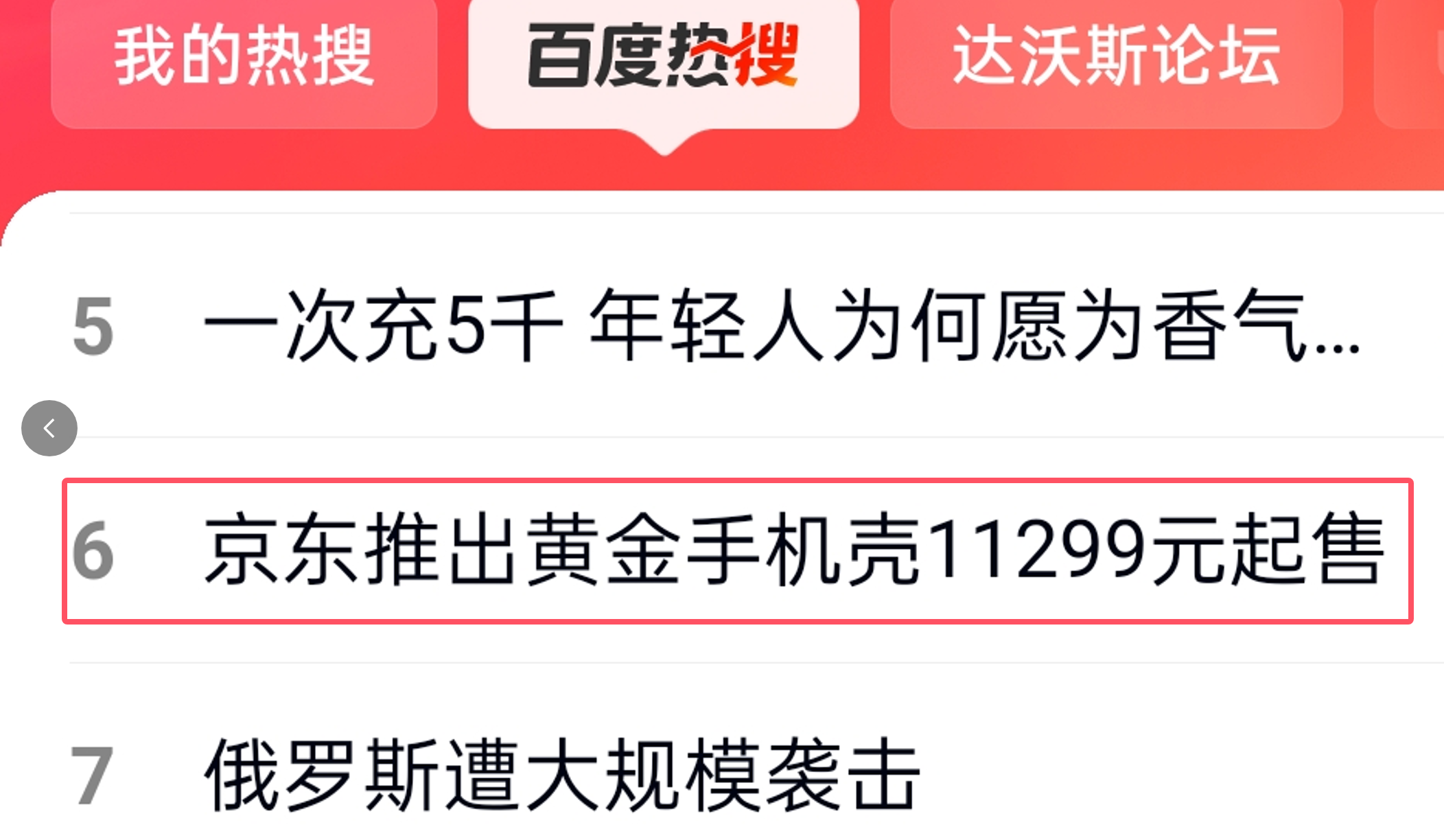 “京东推出黄金手机壳11299元起售”冲上百度热搜