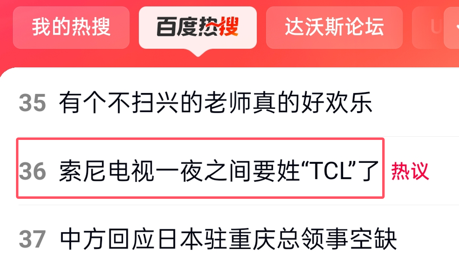 家电消费网1月22日讯 今天,“索尼电视一夜之间要姓‘TCL’了”冲上百度热搜。
