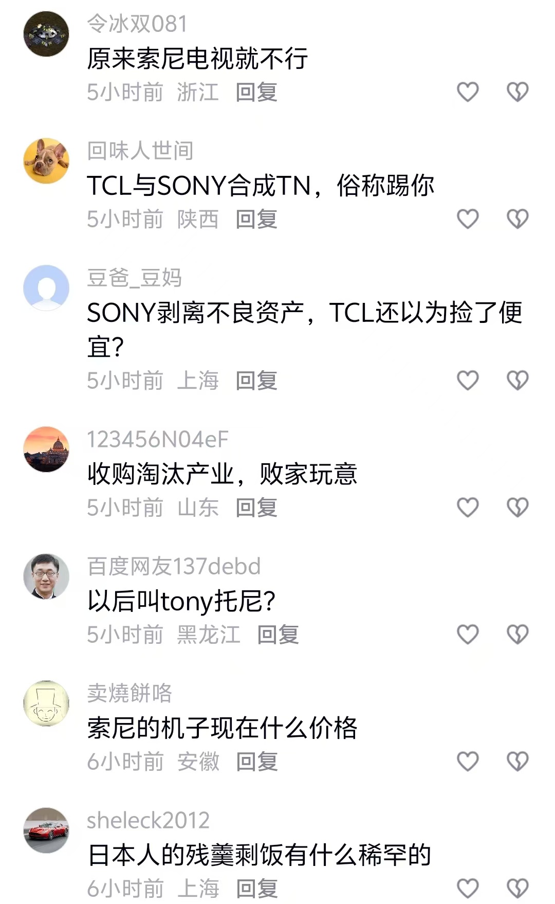 该消息引发网友热议。有网友表示,20年前觉得有些国外品牌无法超越,电视是三星、索尼、LG等。现在看来中国人真牛。海信、TCL电视超过他们了。有网友则表示,日本人的残羹剩饭有什么稀罕的。索尼剥离不良资产,TCL还以为捡了便宜?(杜佳)