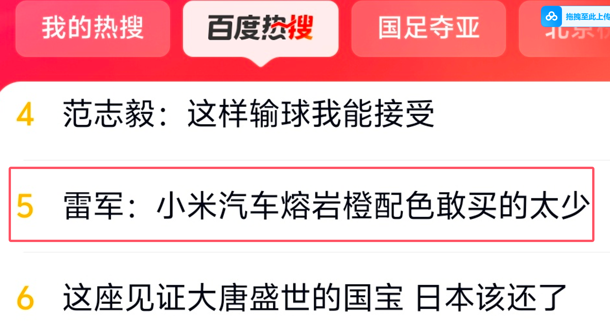 “雷军:小米汽车熔岩橙配色敢买的太少”冲上百度热搜