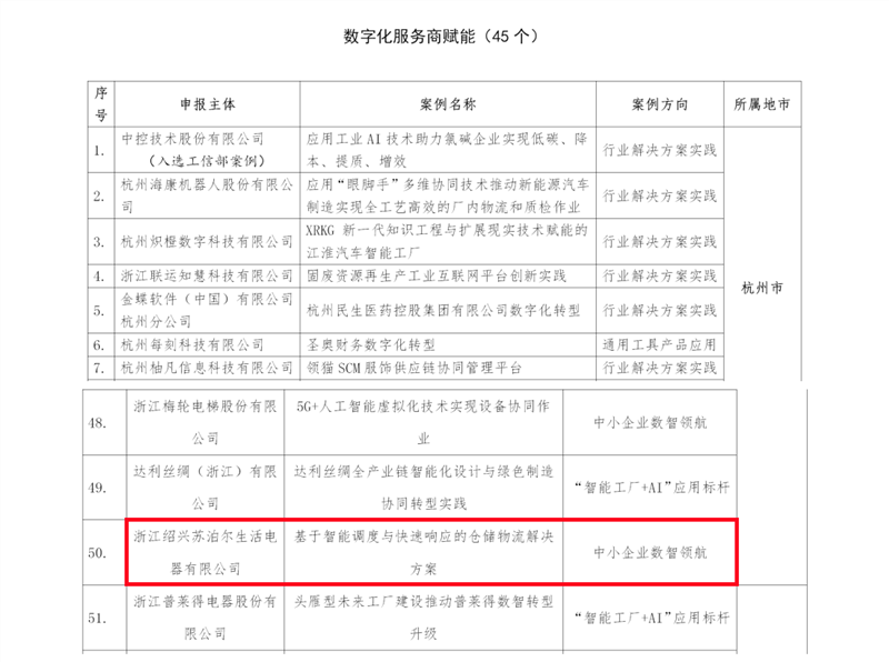 苏泊尔入选2025年浙江省制造业数字化转型典型案例