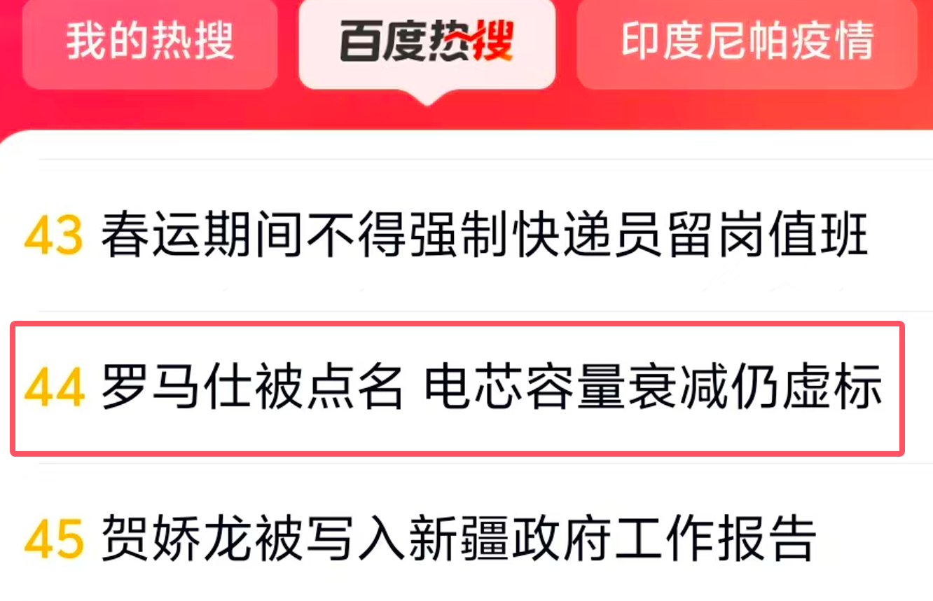 “罗马仕被点名 电芯容量衰减仍虚标”冲上百度热搜