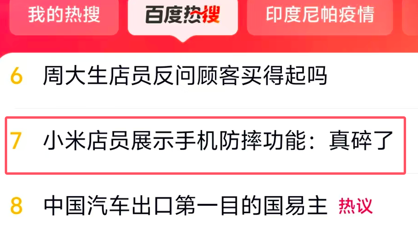 “小米店员展示手机防摔功能:真碎了”冲上百度热搜
