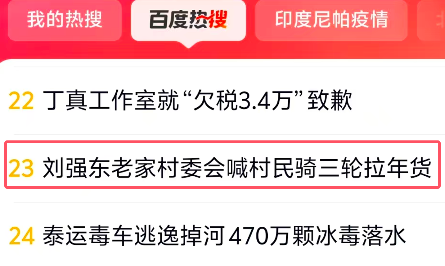 “刘强东老家村委会喊村民骑三轮拉年货”冲上百度热搜