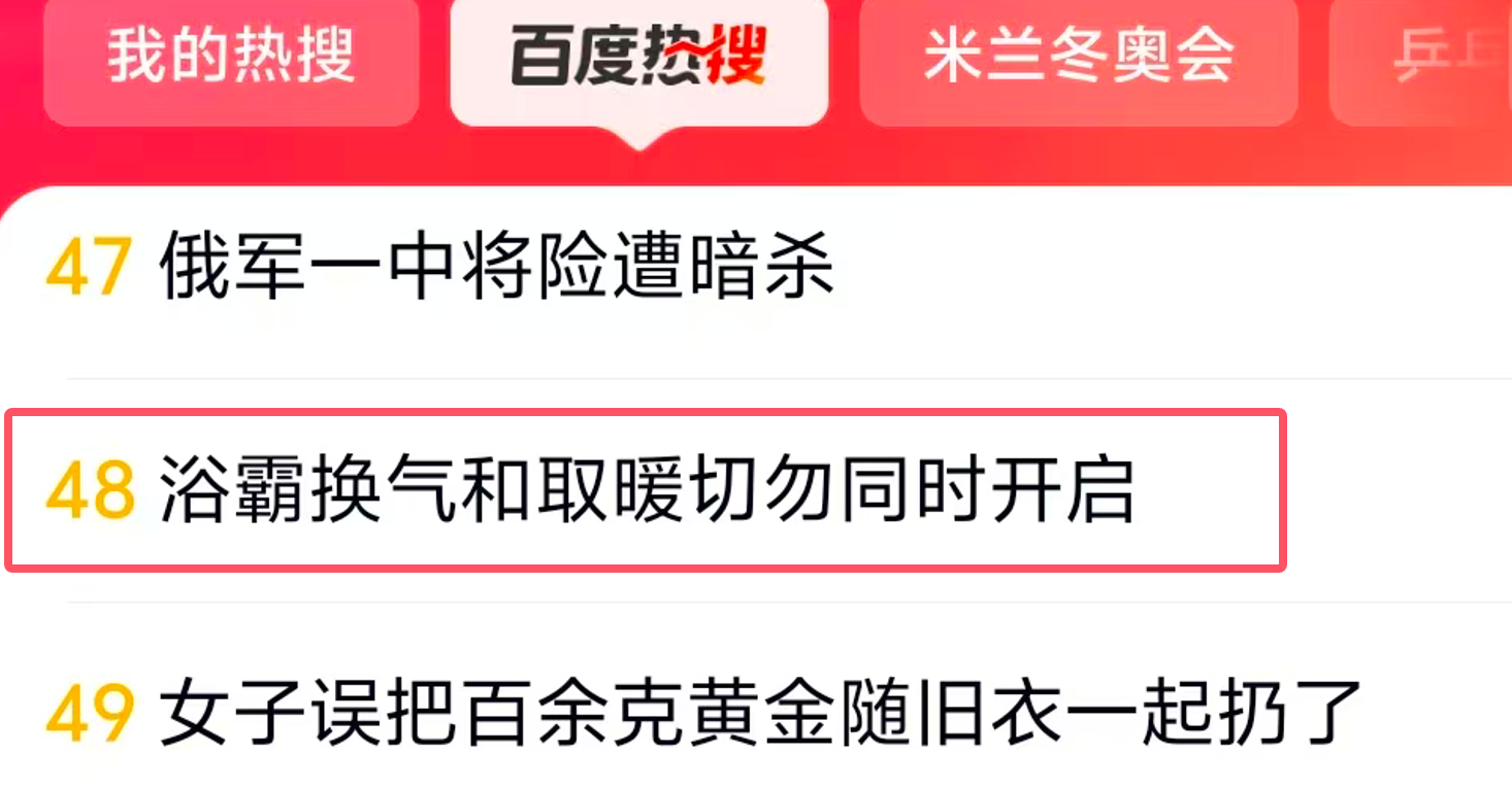 家电消费网2月6日讯 今天,“浴霸换气和取暖切勿同时开启”冲上百度热搜。