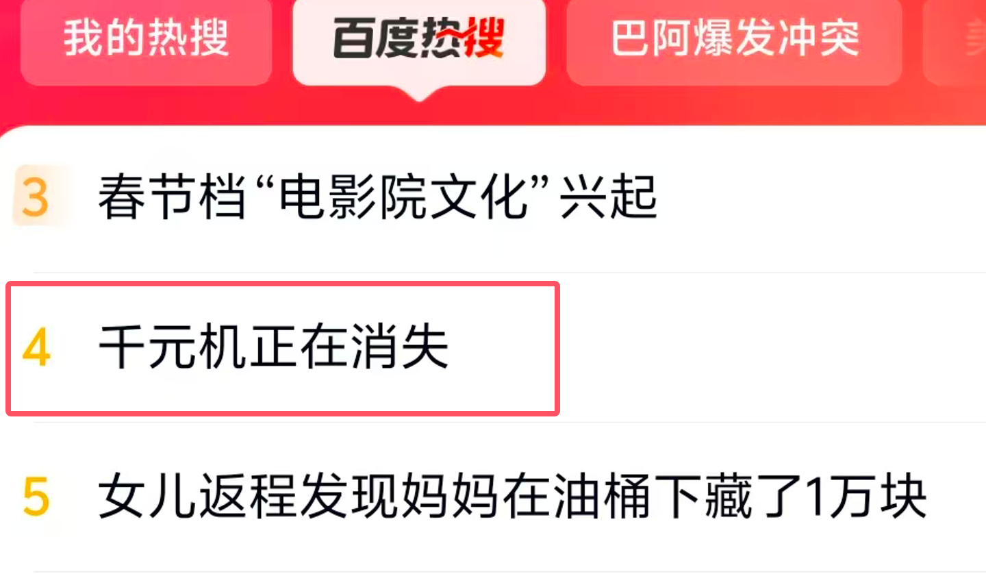 家电消费网2月27日讯 今天,“千元机正在消失”冲上百度热搜。