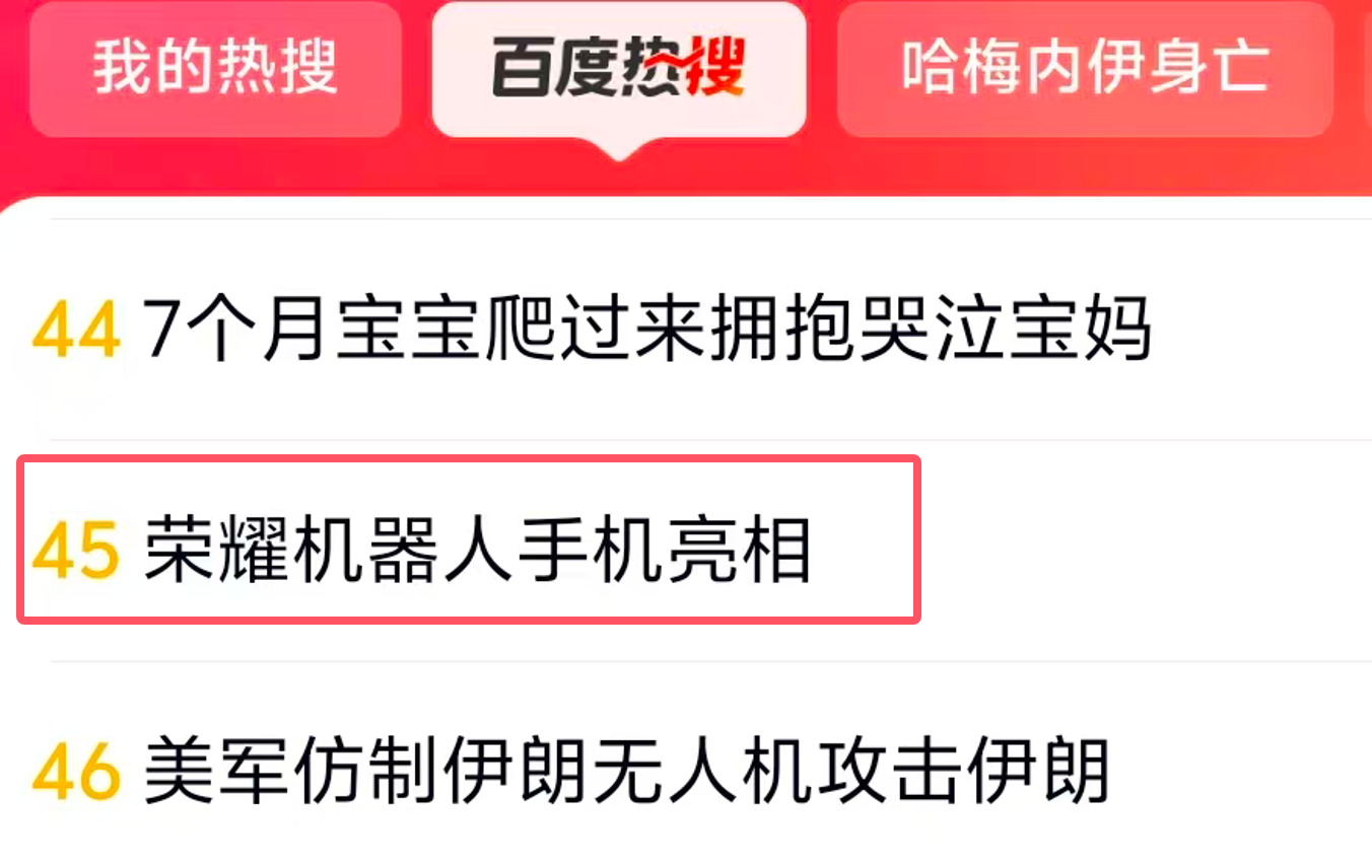 “荣耀机器人手机亮相”冲上百度热搜