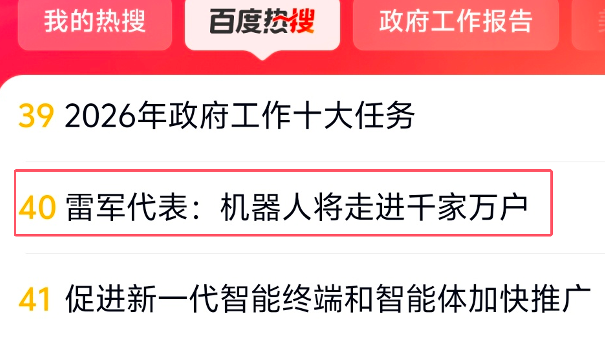 “雷军代表:机器人将走进干家万户”冲上百度热搜