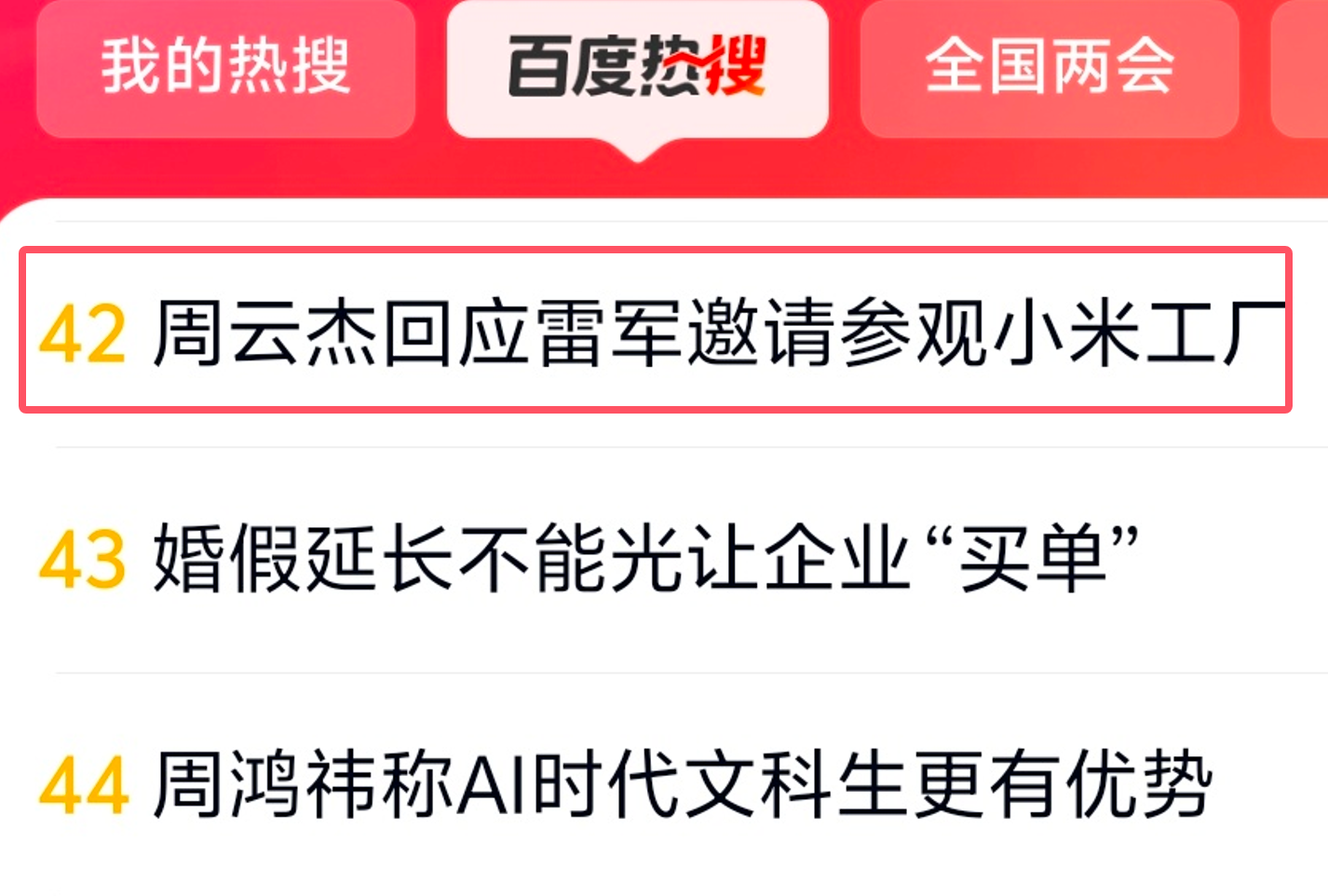 “周云杰回应雷军邀请参观小米工厂”冲上百度热搜